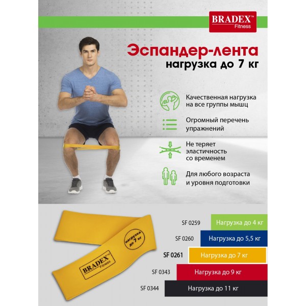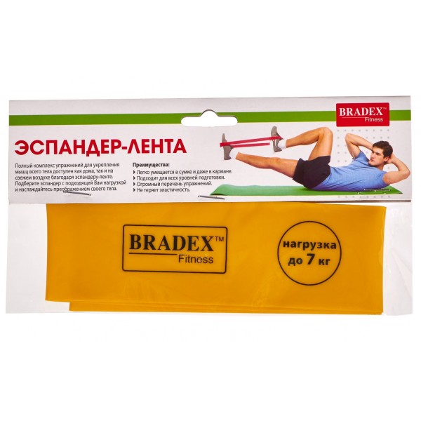 Bradex SF 0261 - ленточный эспандер, чья эластичность позволяет получить дополнительную нагрузку на мышцы во время различных упражнений.