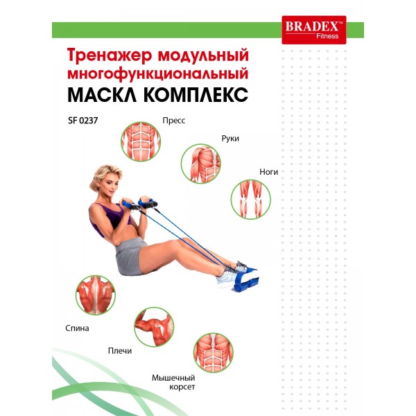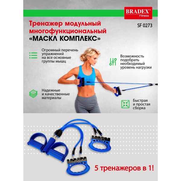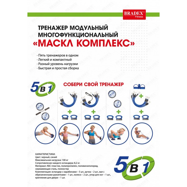 Тренажер модульный Bradex SF 0273 объединяет возможности пяти тренажеров, предлагая простой метод сборки и индивидуальный подбор нагрузки для упражнений на разные группы мышц.