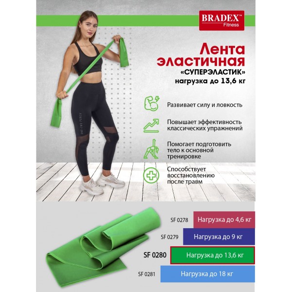 Bradex SF 0280 - ленточный эспандер, чья эластичность позволяет получить дополнительную нагрузку на мышцы во время различных упражнений.