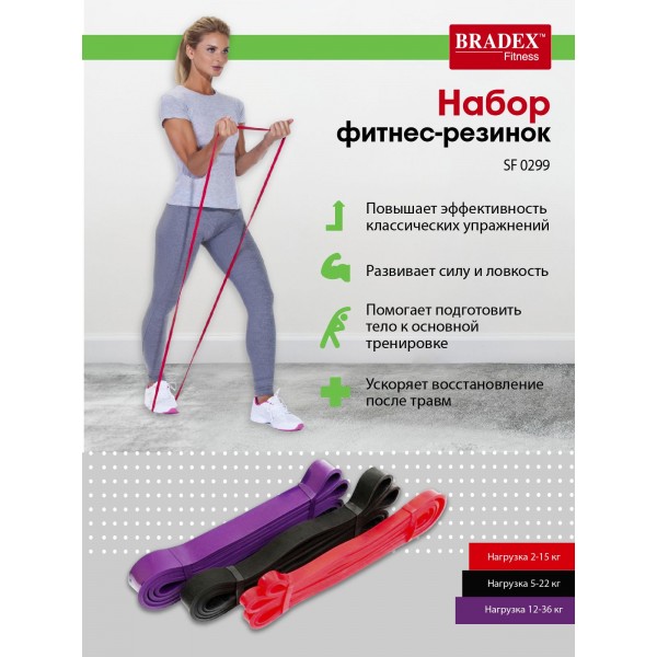 Набор фитнес-резинок Bradex SF 0299 состоит из трех эластичных лент разной ширины и нагрузки. Комбинируйте эспандеры для получения нужного уровня сопротивления при выполнении упражнений.
