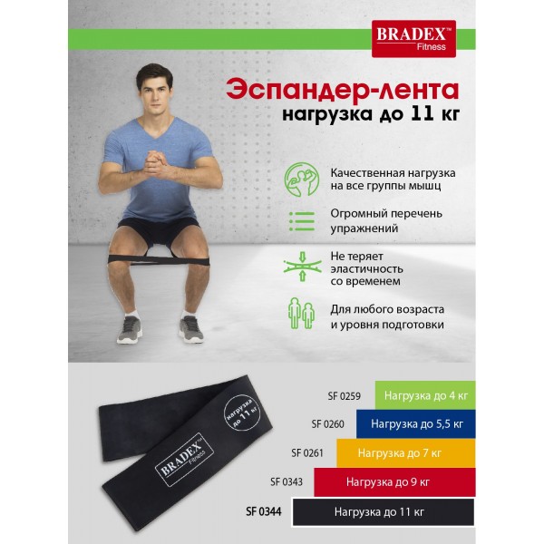 Bradex SF 0344 - ленточный эспандер, чья эластичность позволяет получить дополнительную нагрузку на мышцы во время различных упражнений.