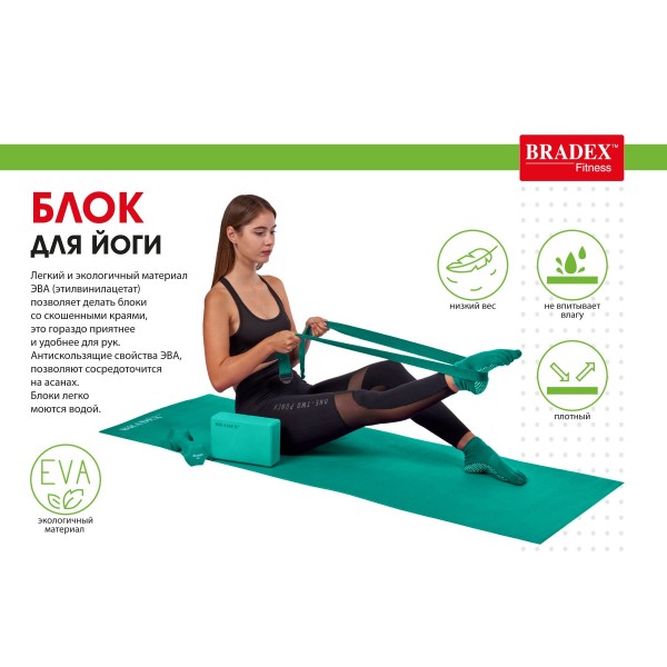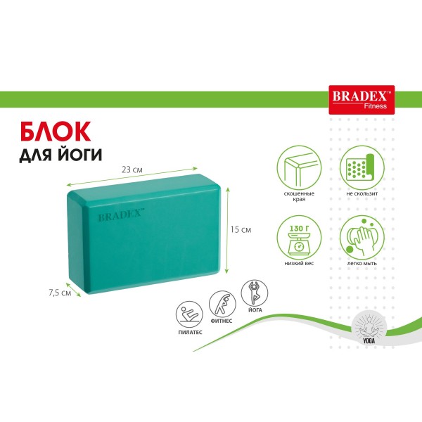 Блок для йоги Bradex SF 0408 - удобный дополнительный снаряд для растяжки и других упражнений. Такой опорный кирпич имеет форму со скошенными углами и нескользящую поверхность.