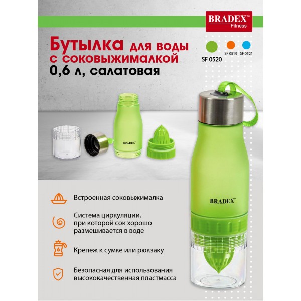 Бутылка для воды Bradex SF 0520 имеет встроенную соковыжималку для получения свежего напитка в любое время.