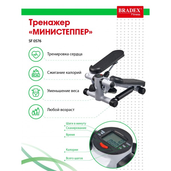 Bradex SF 0576 - домашний министеппер для пользователей весом до 100 кг. Компактная модель для тренировок в удобном месте.