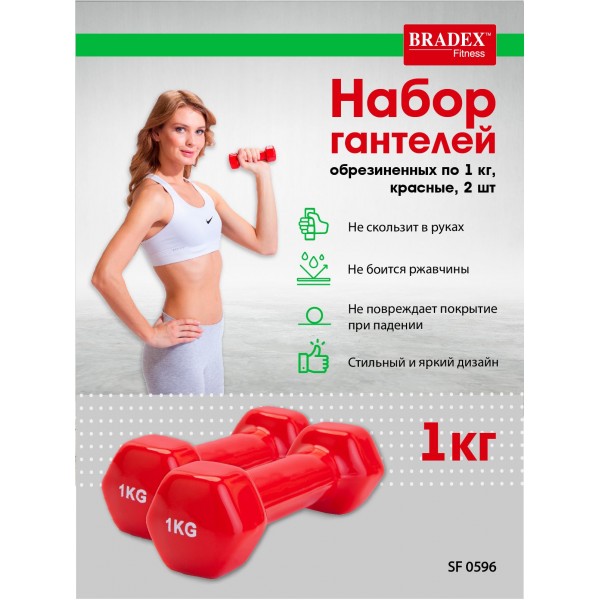 Гантели Bradex SF 0596 имеет резиновое покрытие, которое бережет руки от мозолей, а поверхность пола от следов ударов в случае падения. Вес по 1 кг, 2шт.