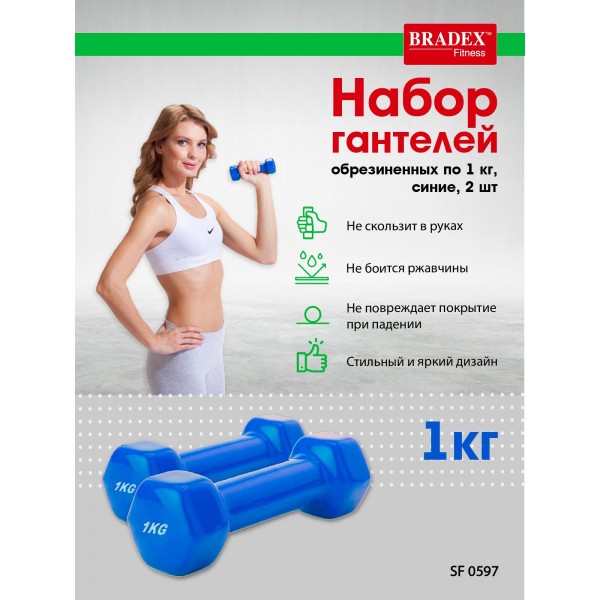 Гантели Bradex SF 0597 имеет резиновое покрытие, которое бережет руки от мозолей, а поверхность пола от следов ударов в случае падения. Вес по 1 кг, 2шт.