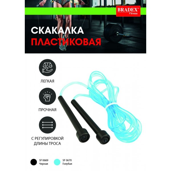 Скакалка Bradex SF 0669 - простая и надежная модель с пластиковым тросом. Длина троса легко регулируется.