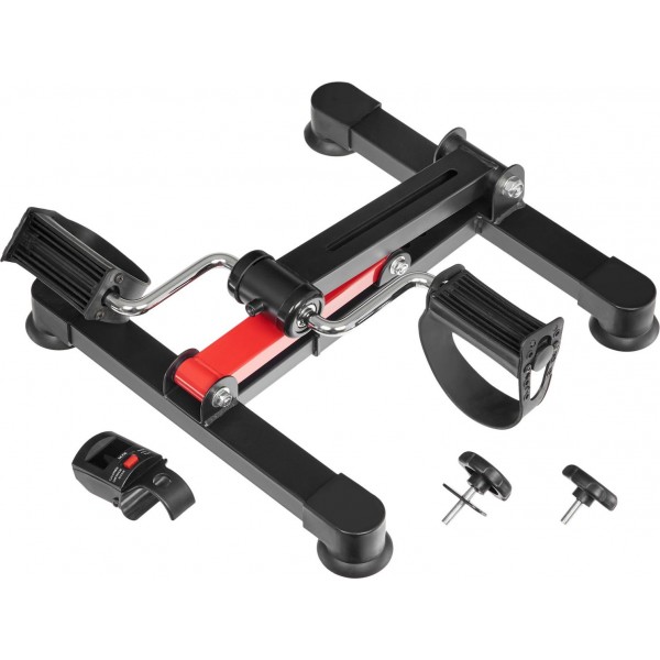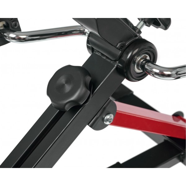 Использовать устройство можно для тренировки ног или рук. Устойчивая конструкция имеет винт для регулировки нагрузки и комфортные педали с ремнями для фиксации стопы.
