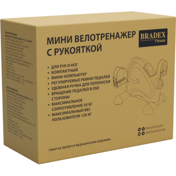 Bradex SF 1012 - компактный мини-велотренажер с удобной ручкой, рассчитанный на вес спортсмена до 120 кг.
