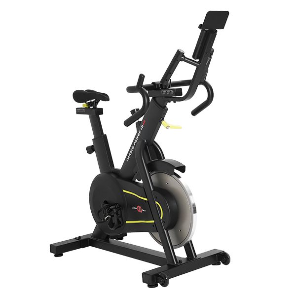 Cardio Power IB45 – современный спин-байк с электромагнитной нагрузкой, выполненный в стильном черном корпусе с ярко-желтыми элементами. Усиленная конструкция рамы рассчитана на массу до 140 кг.