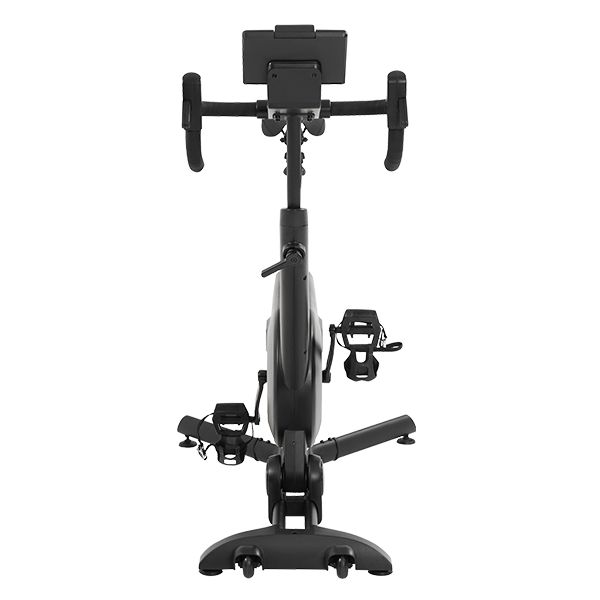 Маховик на 15 кг позволяет задать 32 уровня сложности, регулировка электронная. Положение спортивного седла и руля индивидуально подбираются под конкретного пользователя. Проверка работы сердца может быть проведена как через встроенные сенсоры, так и беспроводным кардиопоясом (в комплекте).
