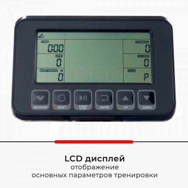 Водное сопротивление тренажера поддерживает 6 вариантов нагрузки, с плавным движением, без рывков. Конструкция с усиленной рамой подходит для занятий спортсменам высокого роста. За счет эргономичного дизайна тренажер не оказывает вредного воздействия на стопы и плечевой пояс.