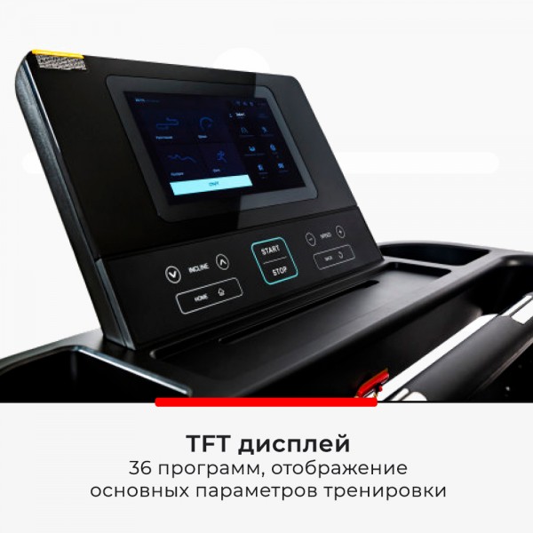 Консоль включает десятидюймовый цветной TFT монитор, на котором можно не только получить данные о забеге, но и использовать возможности мобильных спортивных приложений. Дорожка также оснащена: