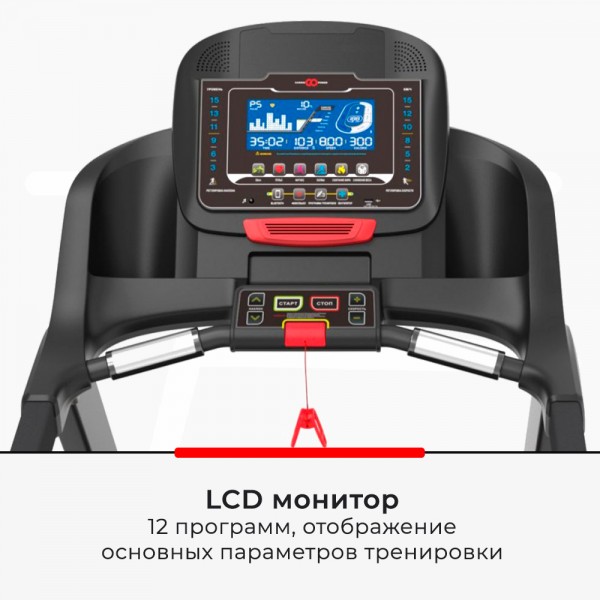 На семидюймовом мониторе можно наблюдать за ходом забега, а также настраивать работу встроенных программ. Также дорожка оборудована: