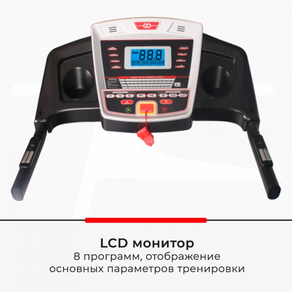 На LCD дисплее отображаются все параметры тренировки, а также выполняется выбор из 8 программ. Тренажер оборудован: