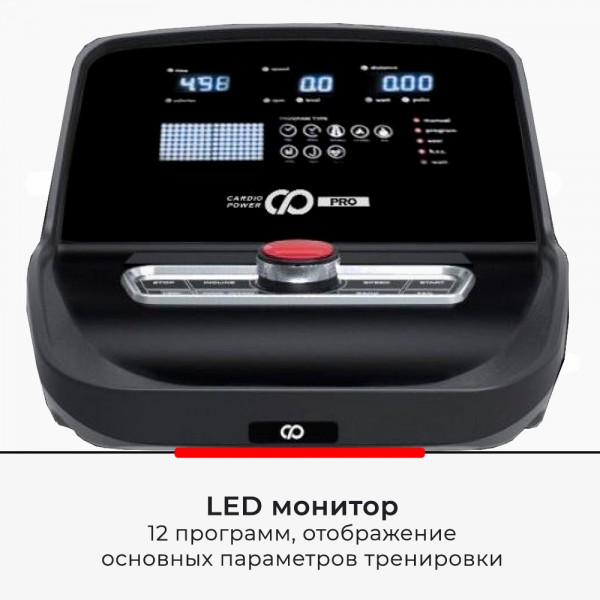 На четырехоконной консоли можно следить за ходом заезда, контролируя показатели пульса, время, скорость и т. д. Среди встроенных программ: