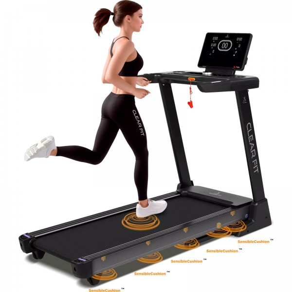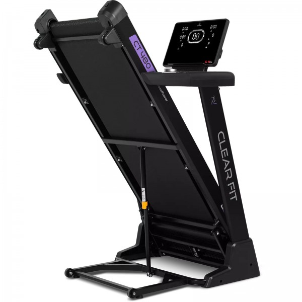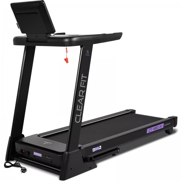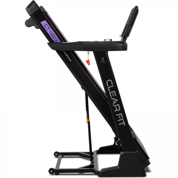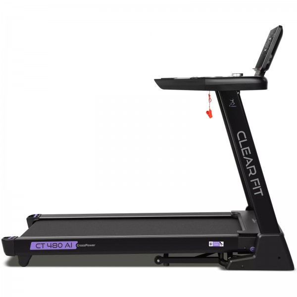Clear Fit CrossPower CT 480 AI – беговая дорожка комфортным размером полотна и подключением к приложению FitShow. Ограничение веса 140 кг.