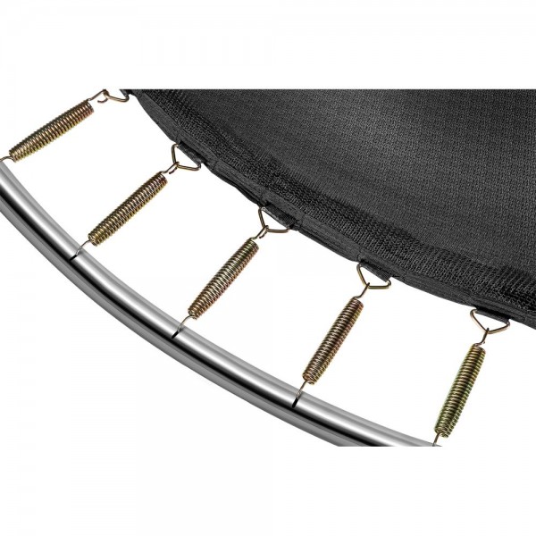 Усиленный каркас батута сочетается с прочными пружинами и надежным прыжковым полотном из Перматрона. Защитная сеть двойного плетения исключает прикосновение к пружинному блоку, на входе установлена усиленная молния с карабинами.