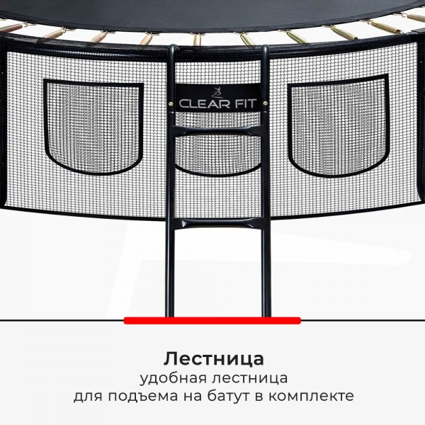 Батуты Clear Fit из серии FamilyHop привлекает внимание ярким дизайном и рисунком на прыжковой поверхности. Конструкция полностью безопасна и максимально надежна. Модель имеет спринклер, по краю, и в жару можно включить воду для охлаждения приятными брызгами.