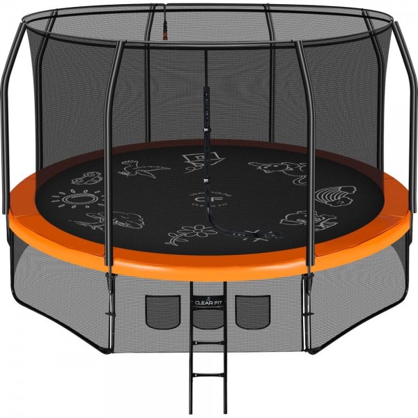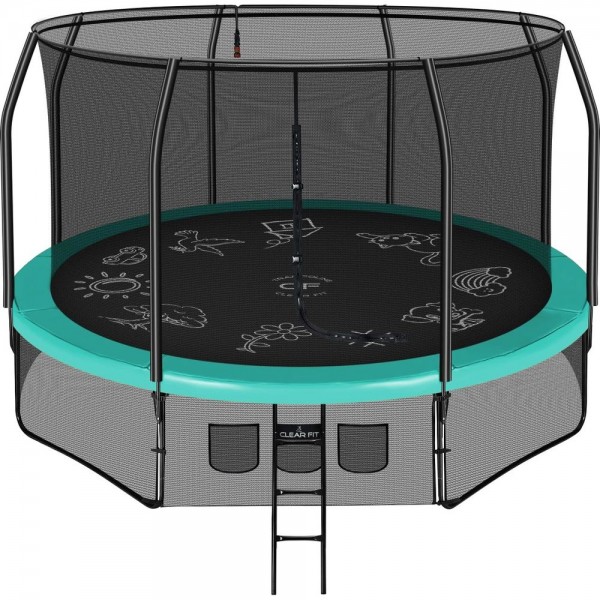 Батуты Clear Fit из серии FamilyHop привлекает внимание ярким дизайном и рисунком на прыжковой поверхности. Конструкция полностью безопасна и максимально надежна. Модель имеет спринклер, по краю, и в жару можно включить воду для охлаждения приятными брызгами.