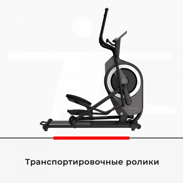 Конструкция с вертикальным приводом и передним расположением маховика позволила получить небольшие размеры тренажера. Модель предлагает длину шага 51 см и межпедальный интервал 9,5 см для естественной траектории движения человека. Эллипсоид будет оптимален для кросс-фита, а также интервальных занятий. Надежность тренажера обеспечивают мощная рама, утяжеленный маховик и профессиональный привод, алюминиевый роликовый трек, а также поликлиновый ремень промышленного типа и высококачественные подшипники..