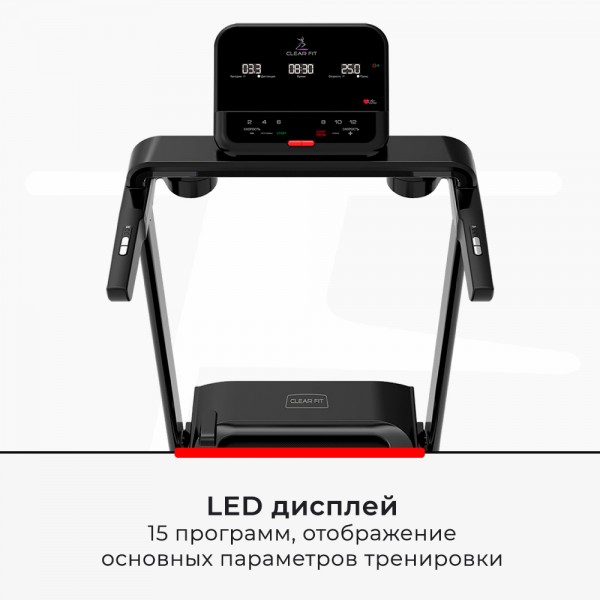 Clear Fit LifeCardio LT 10 – беговая дорожка с отличной функциональностью и удобными размерами. Оптимальный выбор для домашних занятий с возможностью компактного хранения.