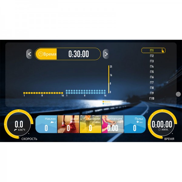 | Измерение пульса | датчики на рукоятках, кардиопояс (опция) |