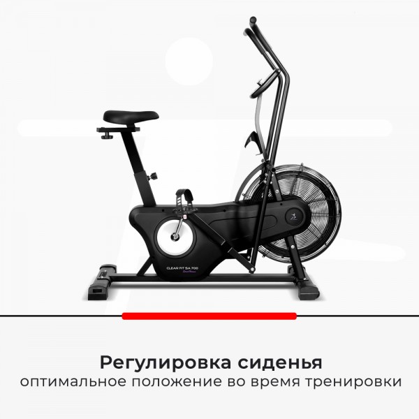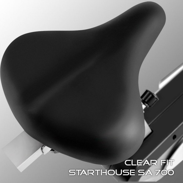 Clear Fit StartHouse SA 700 – современный спин-байк с аэродинамическим типом нагрузки и активными поручнями. Оригинальная модель с базовым выбором программ.