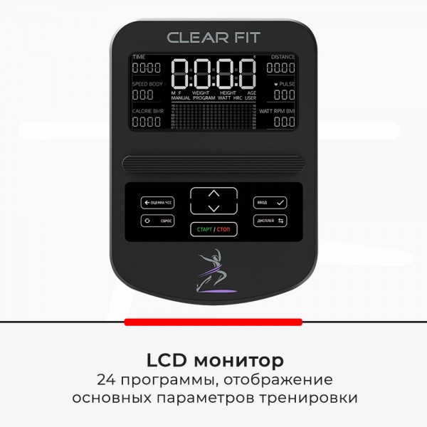 Clear Fit StartHouse SX 45 – современный эллипсоид с передним приводом и возможностью изменения наклона трека. Тренажер с русифицированной консолью для домашних занятий спортсменам весом не более 120 кг.
