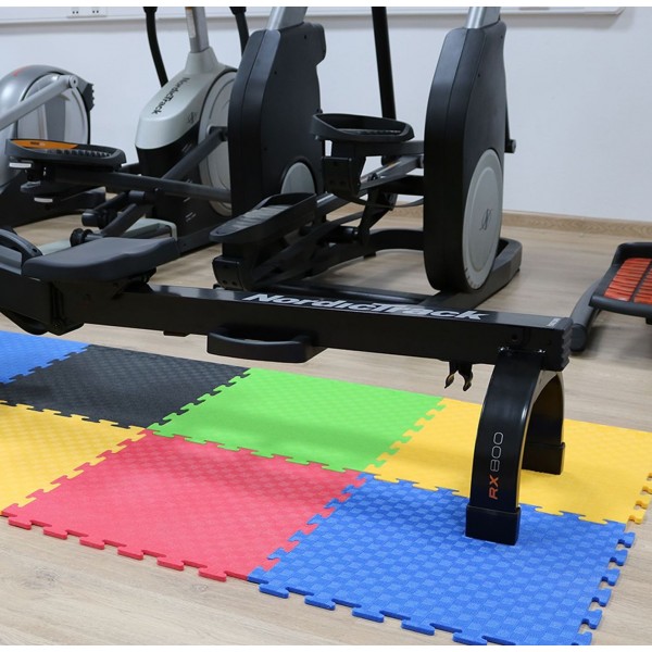 Мат-пазл DFC 1894 позволяет собрать удобное яркое напольное покрытия для фитнеса или установки тренажера. Крепление элементов между собой простое и надежное. Каждая сторона мата выполнена с тиснением. Прилагается два бордюра для создания ровного края.