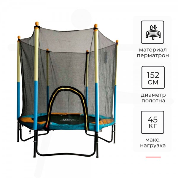 Стальные пружины надежно удерживают прыжковое полотно из перматрона. Есть защитный кожух пружинного блока. Сеть закрывается на молнию снаружи, поэтому малыш изнутри её не откроет. Дополнительно можно купить лестницу.