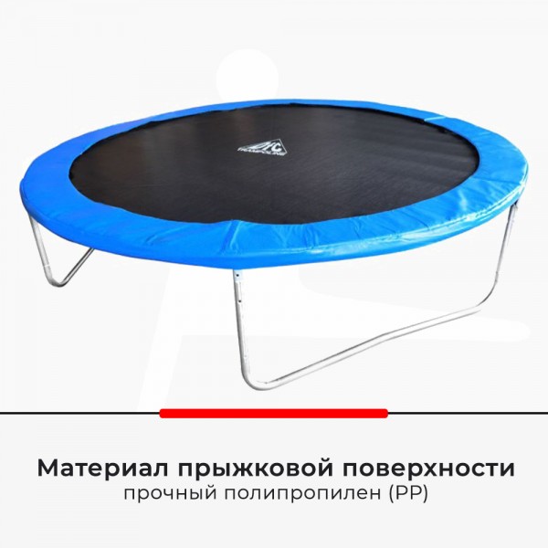 Прочное прыжковое полотно моделей закрыто специальным чехлом. Дополнительно можно приобрести лестницу.