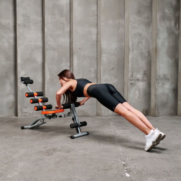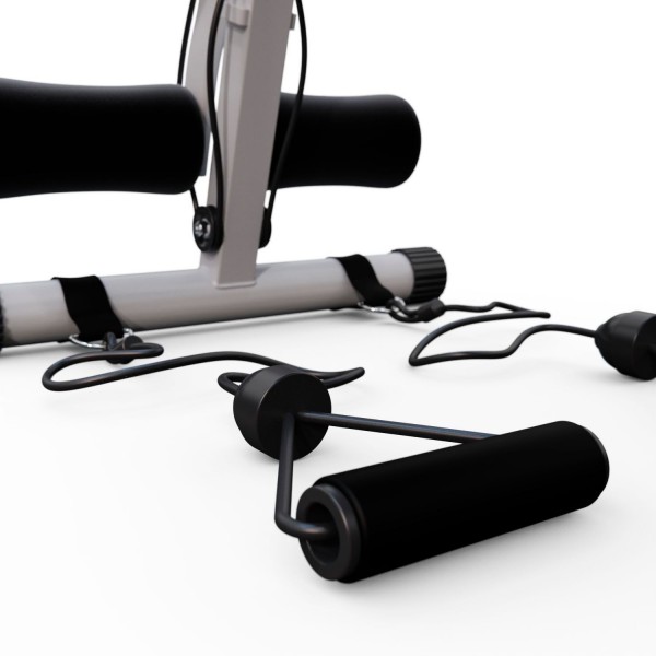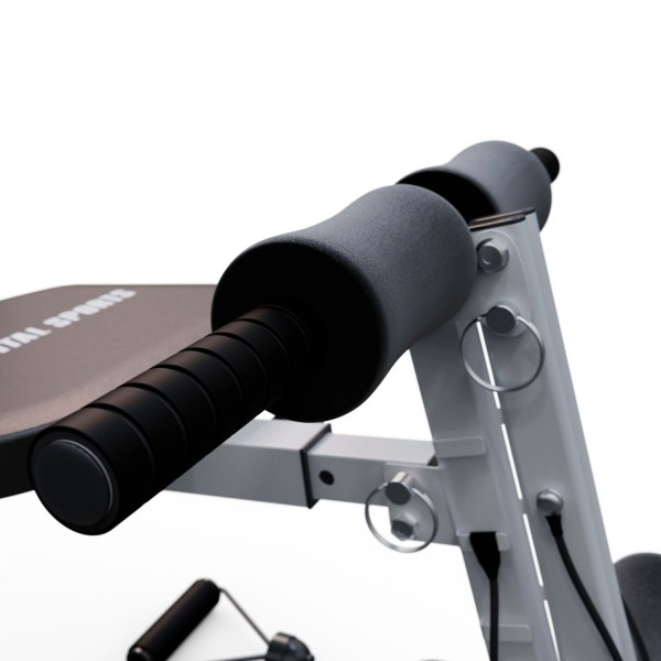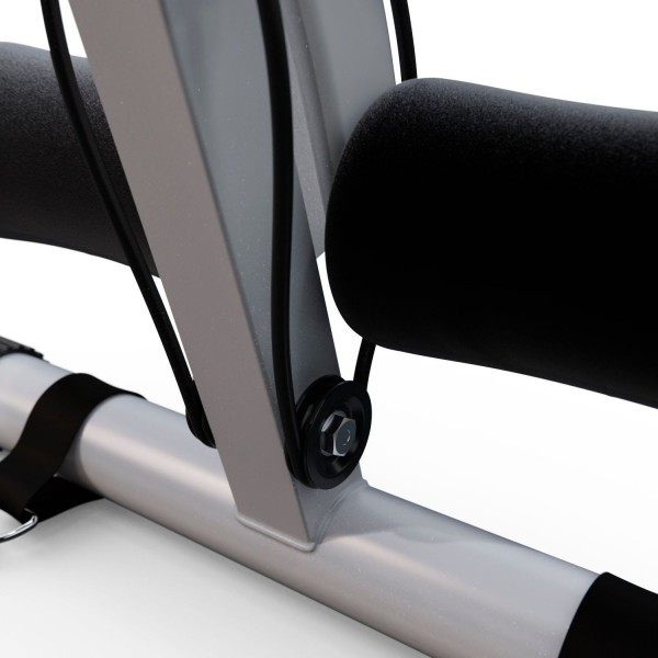 Тренажер оборудован пружинами, которые обеспечивают создание 3х уровней нагрузки во время выполнения обратной гиперэкстензии и жима ногами. Скамья также имеет: