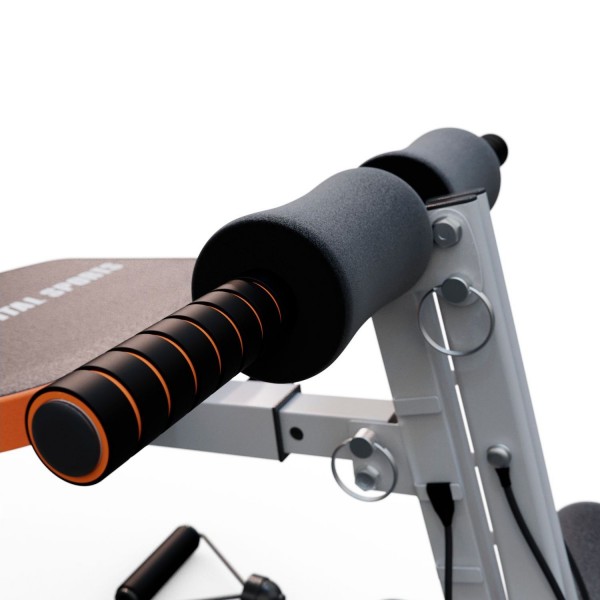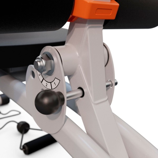 Тренажер оборудован пружинами, которые обеспечивают создание 3х уровней нагрузки во время выполнения обратной гиперэкстензии и жима ногами. Скамья также имеет: