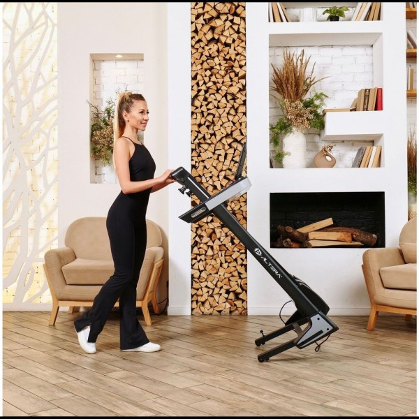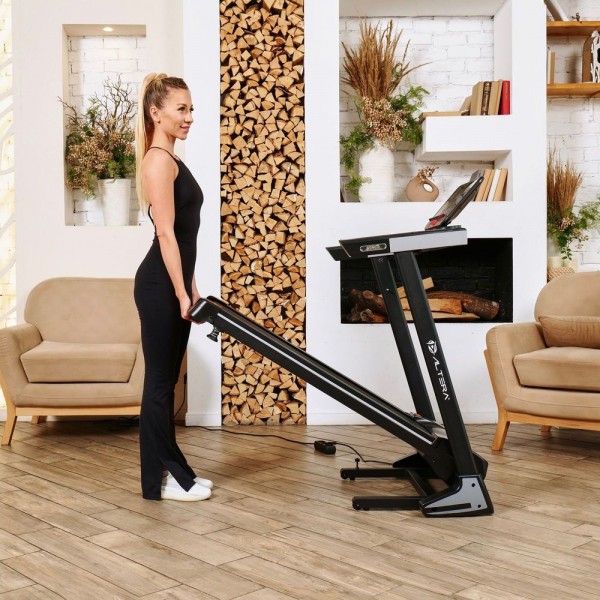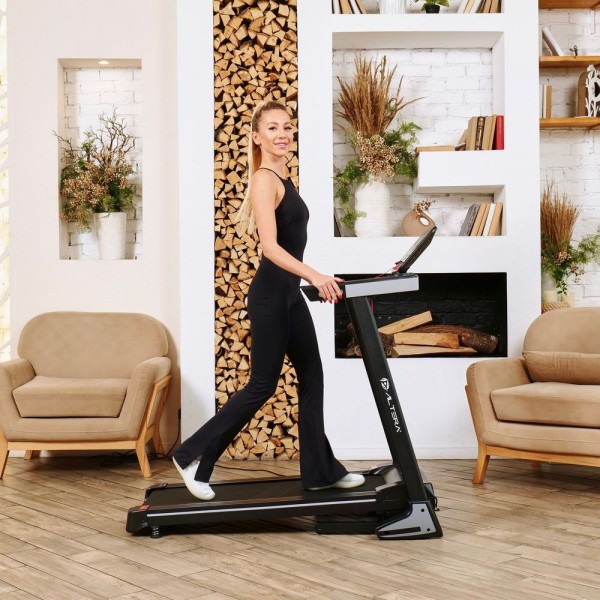 При полном разгоне полотна бегун сможет двигаться со скоростью до 12 км/ч. Беговая зона имеет ширину 40 см, а её длина 102 см (при общей длине дорожки 213 см). Модель оборудована подушками амортизации. Удобной функцией является возможность регулировки скорости на поручнях.