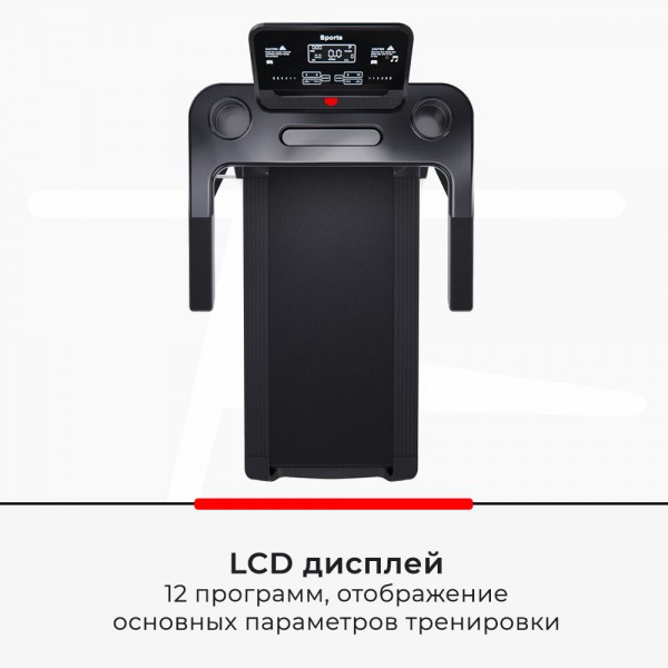 При полном разгоне полотна бегун сможет двигаться со скоростью до 12 км/ч. Беговая зона имеет ширину 40 см, а её длина 102 см (при общей длине дорожки 213 см). Модель оборудована подушками амортизации. Удобной функцией является возможность регулировки скорости на поручнях.