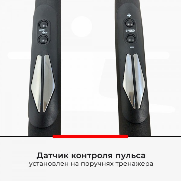 Модель развивает скорость до 10 км/ч, а управление нагрузкой возможно через кнопки на поручнях. Там же встроены датчики проверки пульса. Тренажер легко сложить для компактного хранения.