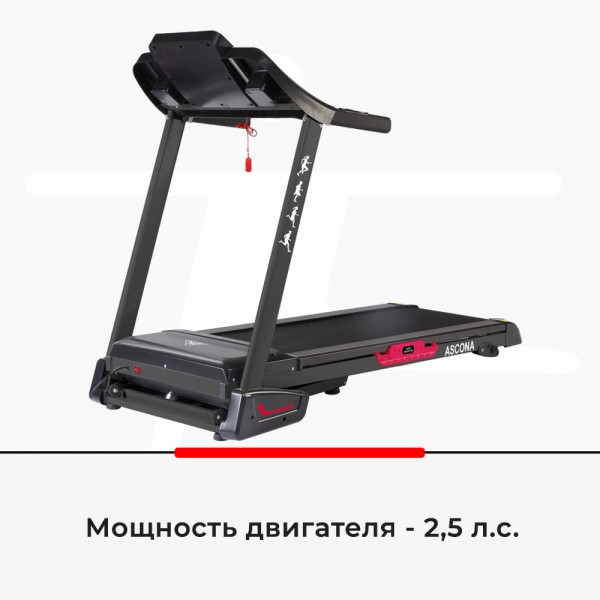 Надежная конструкция включает прочную деку и двигатель на 2,5 л.с., что позволяет развить скорость до 18 км/ч. Предусмотрена небольшая регулировка наклона (механическая). На поручнях есть контроль движения и датчики для проверки пульса. Можно купить и подключить кардиопояс (в комплект не входит). Тренажер легко сложить для хранения.