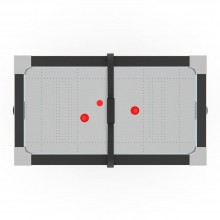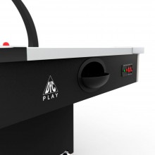 Панель управления позволяет задать параметры игры, информационно табло встроено в дугу над столом, что обеспечивает игрокам отличный обзор. Комплектуется шайбами и битами.
