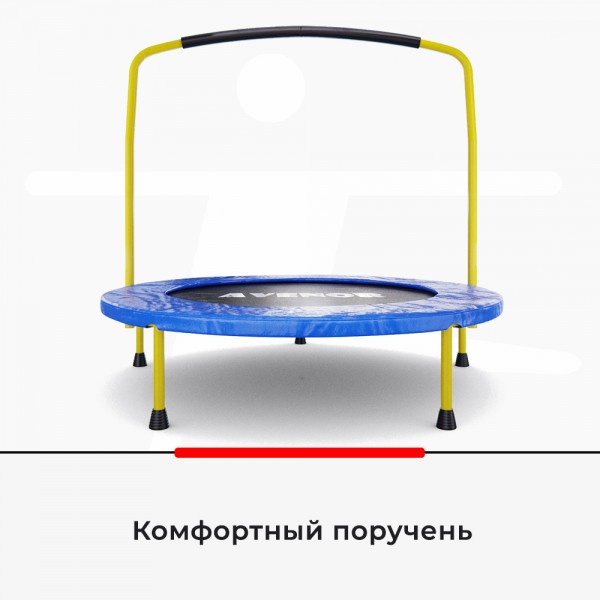Батут DFC AVENOR с поручнем рассчитан на ограничение веса 100 кг. Надежная конструкция подойдет для спортивных прыжков дома.