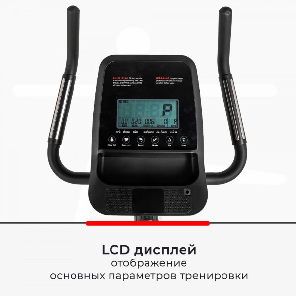 Модель позволяет тренироваться при 10 вариантах нагрузки, которая задается вручную. Конструкция включает маховик с реальным весом 6 кг и 3-х компонентный педальный узел. Устойчивость и прочность рамы позволяет использовать тренажер пользователям весом до 135 кг.