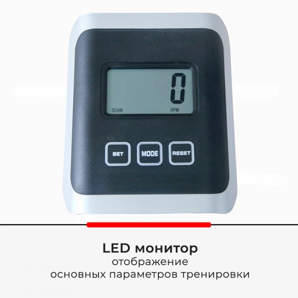 Регулировка магнитной нагрузки выполняется вручную (8 положений). Удобное кресло двигается по раму для пользователей разного роста. Широкие педали оснащены надежными ремнями фиксации. В поручни встроены датчики проверки пульса.