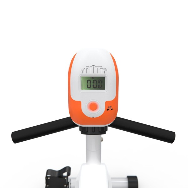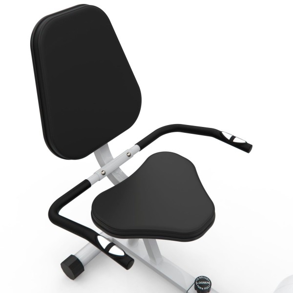Предусмотрено8 уровней нагрузки, которые можно выбрать поворотом регулятора на корпусе. Комфортное сидение имеет встроенные датчики для проверки пульса на поручнях. Положение сидения регулируется. Педали позволяют зафиксировать стопу ремнями.