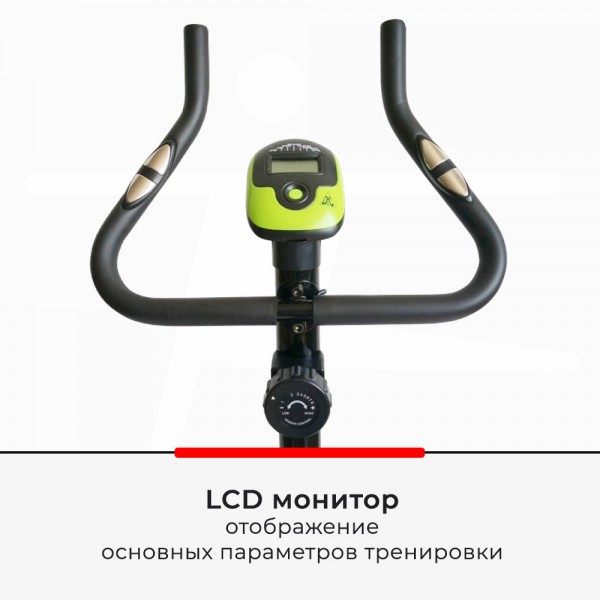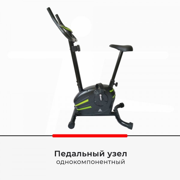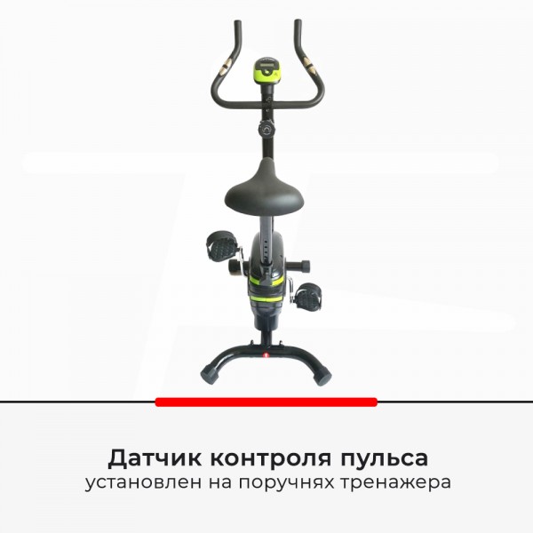 Велотренажер позволяет настроить высоту сидения и надежно зафиксировать ступни ремешками. Показания пульса снимают датчики на ручках, также есть возможность дополнительно приобрести специальный пояс с более точным мониторингом этого параметра (DFC W117).