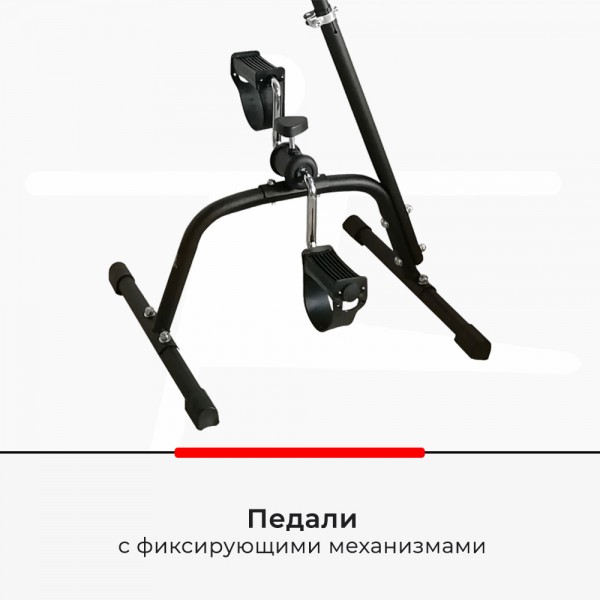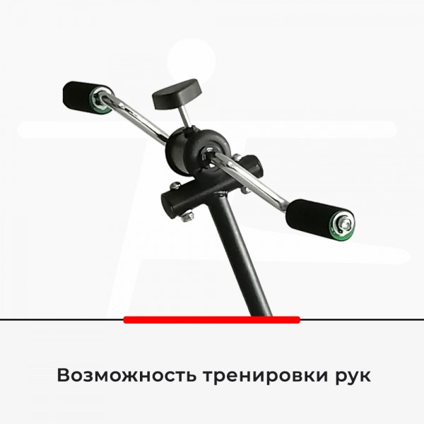 Тренажер можно использовать в двойном назначении - для ног и для рук. Регулировка позволяет подобрать нужную высоту педалей. Занятия проводят сидя на отдельном стуле или кресле. Уровень сопротивления можно подобрать для рук и ног по отдельности.