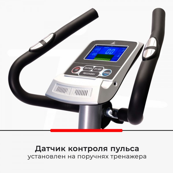 Конструкция использует вертикальный тип посадки, установлен маховик на 5 кг (инерционный 8 кг). Предусмотрено изменение положения седла в двух плоскостях (шесть вариантов высоты и два положения по горизонтали). На поручнях руля встроены элементы для контроля пульса. Проверка пульса осуществляется через касание датчиков на руле.