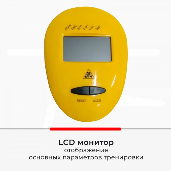 DFC B8102 – недорогой и компактный велотренажер для доступных занятий дому. Привлекает внимание оригинальным дизайном с ярко-желтыми вставками. Не нуждается в дополнительном подключении к электросети.