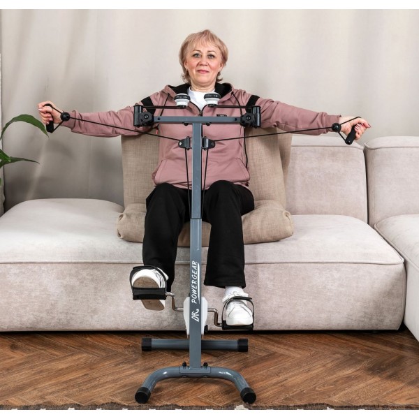 DFC dual bike B810 - оригинальный тренажер для ног и рук, который также включает дополнительные эспандеры. Выпускается с накладками белого или желтого цвета.
