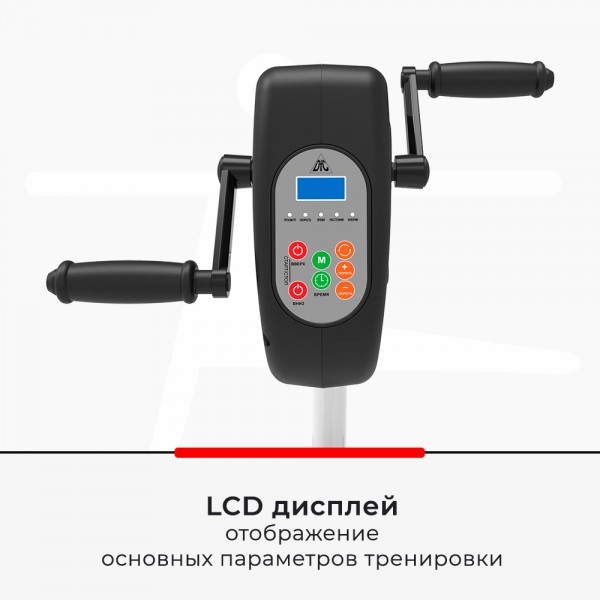 Тренажер оборудован двумя моторами по 70 Вт, расположенными в верхней и нижней части. Можно включать их вместе или по одному, выбирая тренировать руки, или ноги, или вместе. Педали тренажера имеют специальную поверхность для дополнительного массажа стоп. Можно настроить высоту положения верхней части (95-104,8 см).