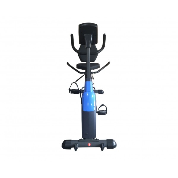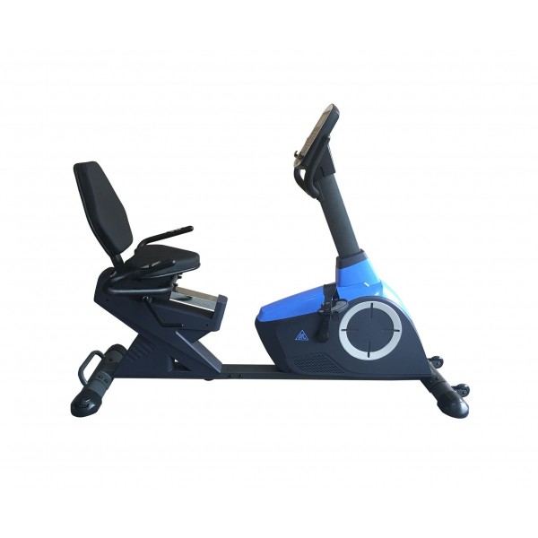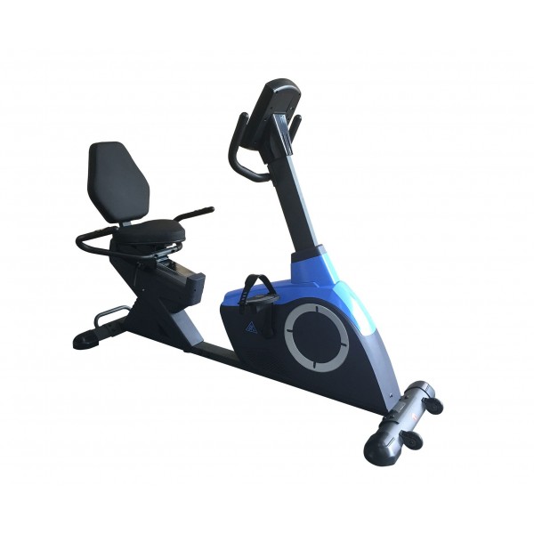 Настройки уровня сопротивления выполняются электронно. Тренажер оборудован удобным креслом с мягкой спинкой, которое можно двигать по раме для людей разного роста. Проверить уровень пульса можно коснувшись датчиков на поручнях. Педали модели имеют антискользящую поверхность и надежные ремни для фиксации стопы.